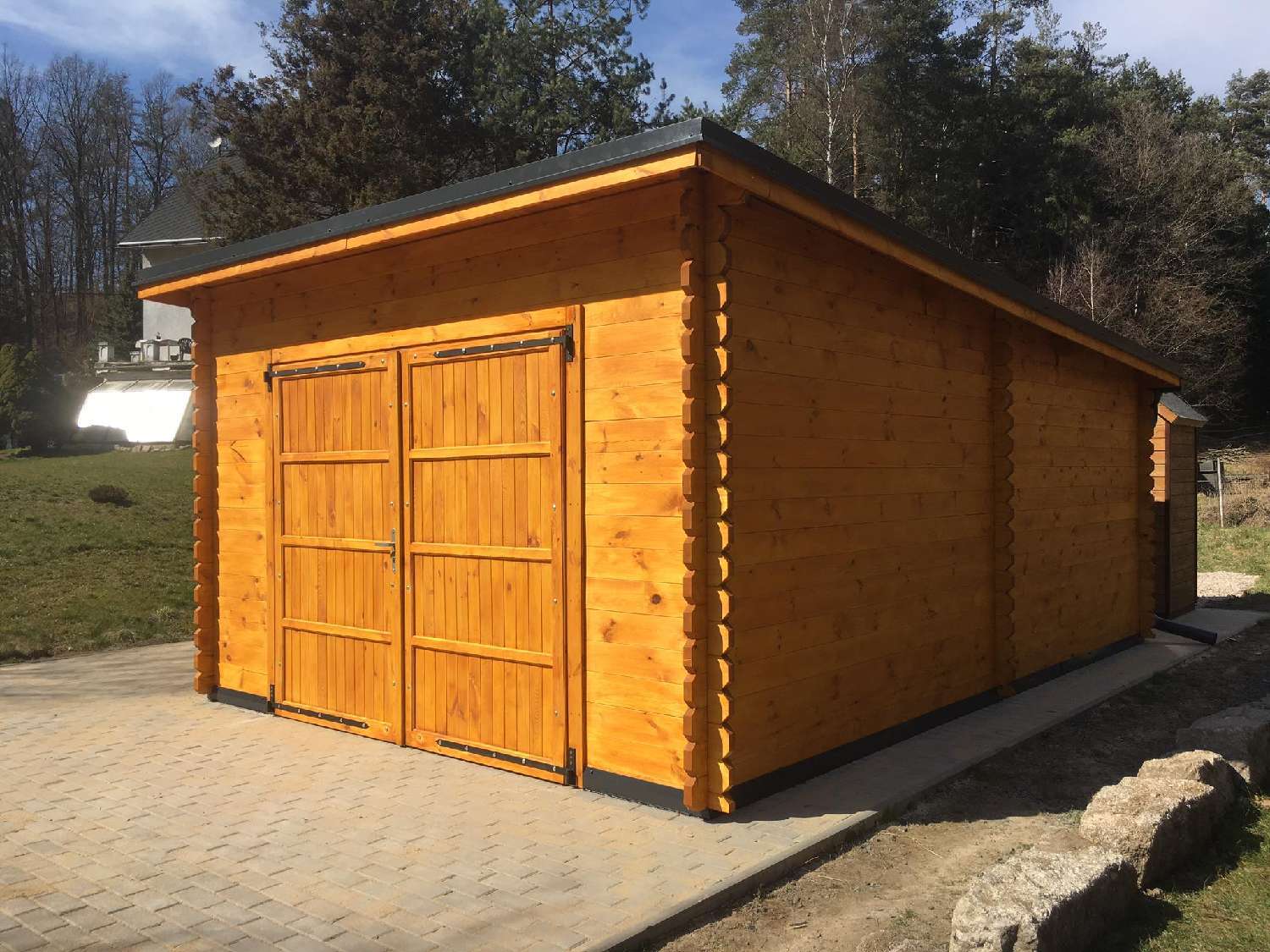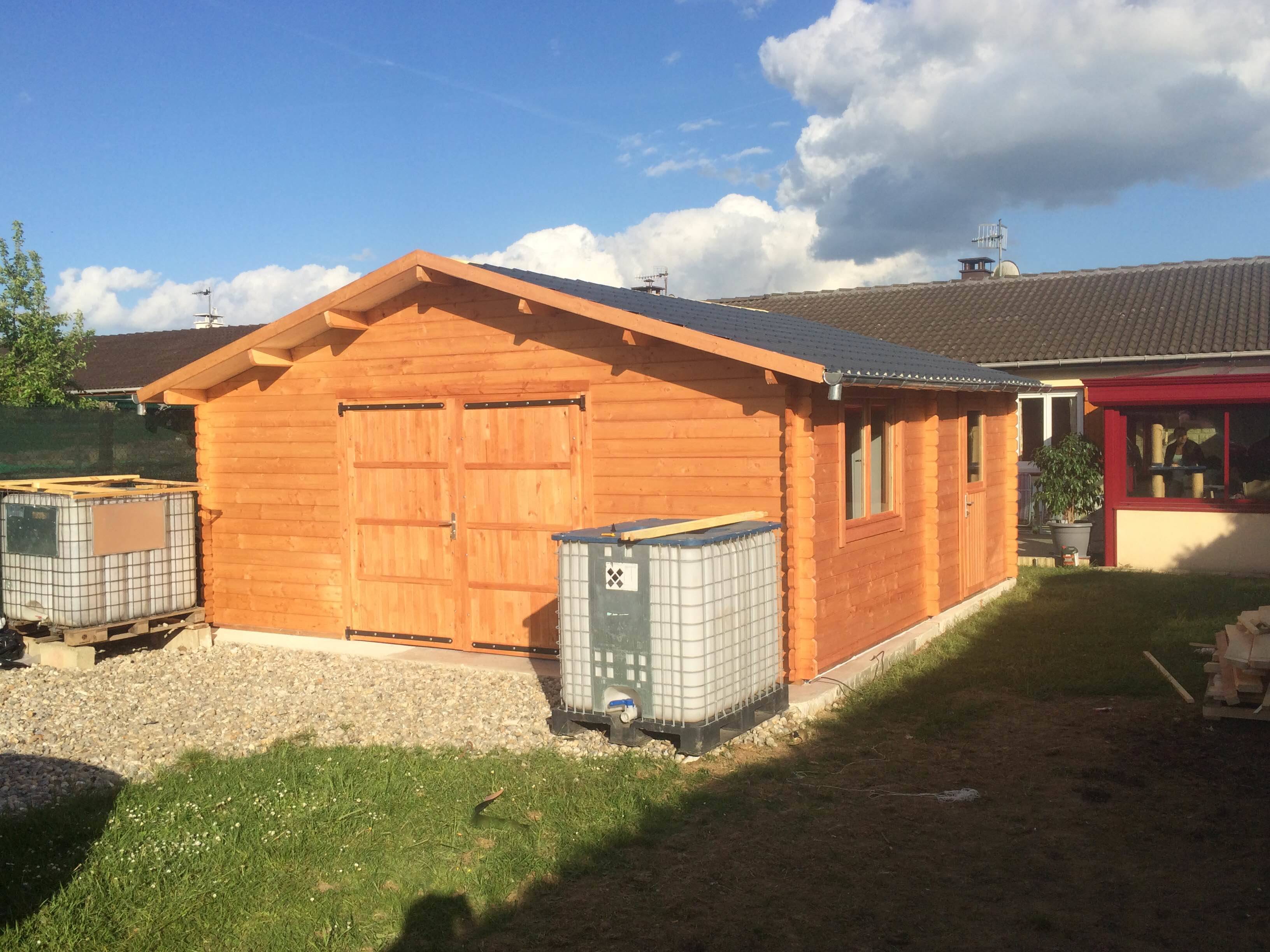 Naše realizace: Dřevěná garáž s plochou střechou 4x6, 44mm, 24m v Lomnici nad Popelkou