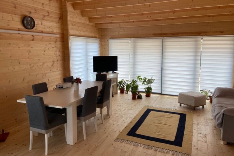 Gilbertova rodina si zvolila standardní zateplený model ELIZA, ale upravila ho tak, aby vyhovoval jejich specifickým potřebám. Větší okna a vyšší dveře zajistily více přirozeného světla a pohodlnější vstup. Odstraněním některých vnitřních stěn zase získali více prostoru v kuchyni a ložnici.